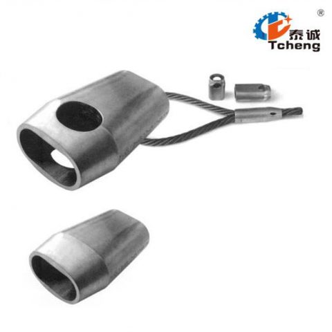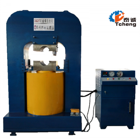 壓套機(jī)通過液壓為動力,結(jié)構(gòu)緊湊、運(yùn)行穩(wěn)定、噪音小、工作效率高。在不破壞鋼絲強(qiáng)度的前提下使軟金屬在模腔內(nèi)充分流動,束緊鋼絲繩的鋼絲,通過鋼絲之間摩擦力達(dá)到成型的目的。